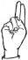 На ћирилици написано ДАРИЈА ГРУЈЕСКОВИЋ састоји се из 17 слова [?]. Исписано ћириличном једноручном азбуком за глувонеме: